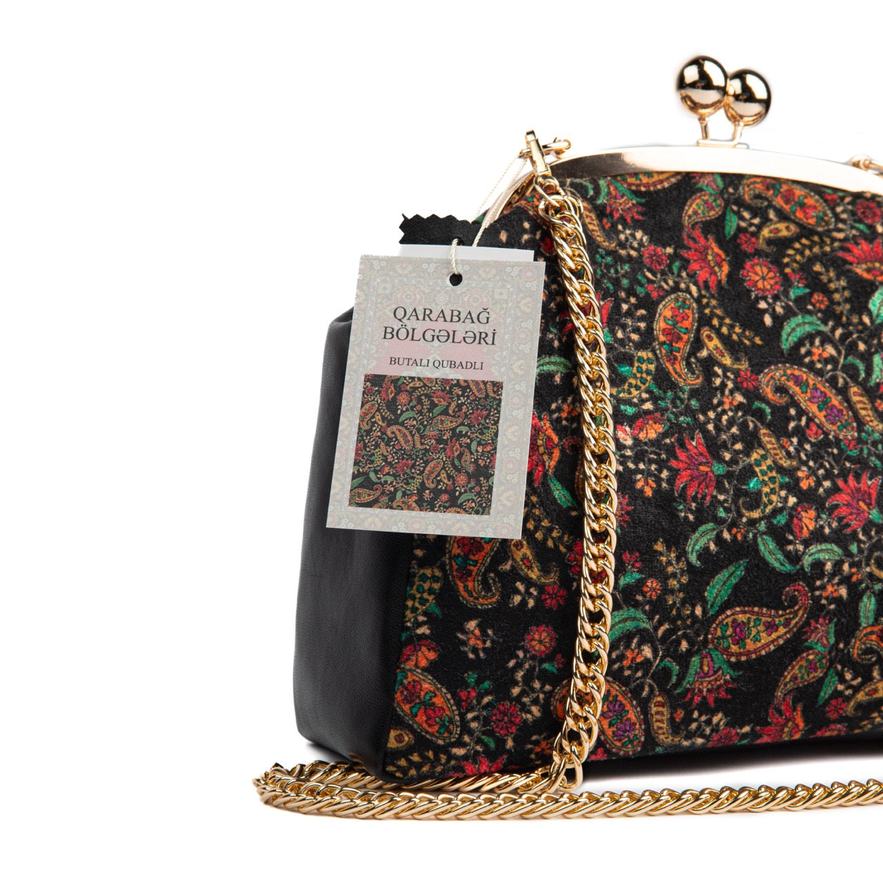 which is based on a carpet called "Saxsıdagüllər". This carpet, which belongs to the Shusha group of the Karabakh carpet weaving school, is considered a work of art in the second half of the 19th century. A bag made in this style, in its history of creation, with its artistic features, reminds the owner of the origins of beauty, inspired by nature itself.